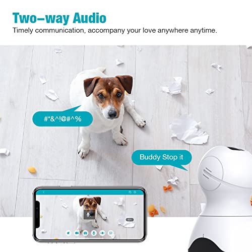 【Smart Human/Motion/Sound Detection Alarm】: This indoor pet camera with phone app supports motion, human and sound detection, when motion or sound is detected, the app will send you a notification, just open it to check quickly what is going on, you will not miss any important movements of your pets.You can watch your baby via your phone wherever you are.